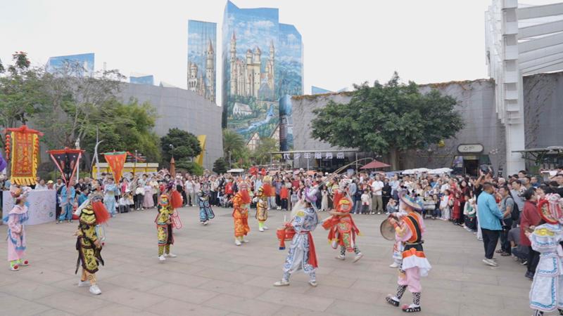 今日上昼11时,伴跟着铿锵锣饱读,开园秀精彩演出。舞龙舞狮腾踊生风,潮汕英歌舞遒劲粗莽,东北秧歌欢欣浓烈,踩高跷扮演震悚灵动……南北习惯绝活秩序亮相,一霎点火现场懊悔,游客纷繁藏身拍照、饱读掌喝彩。