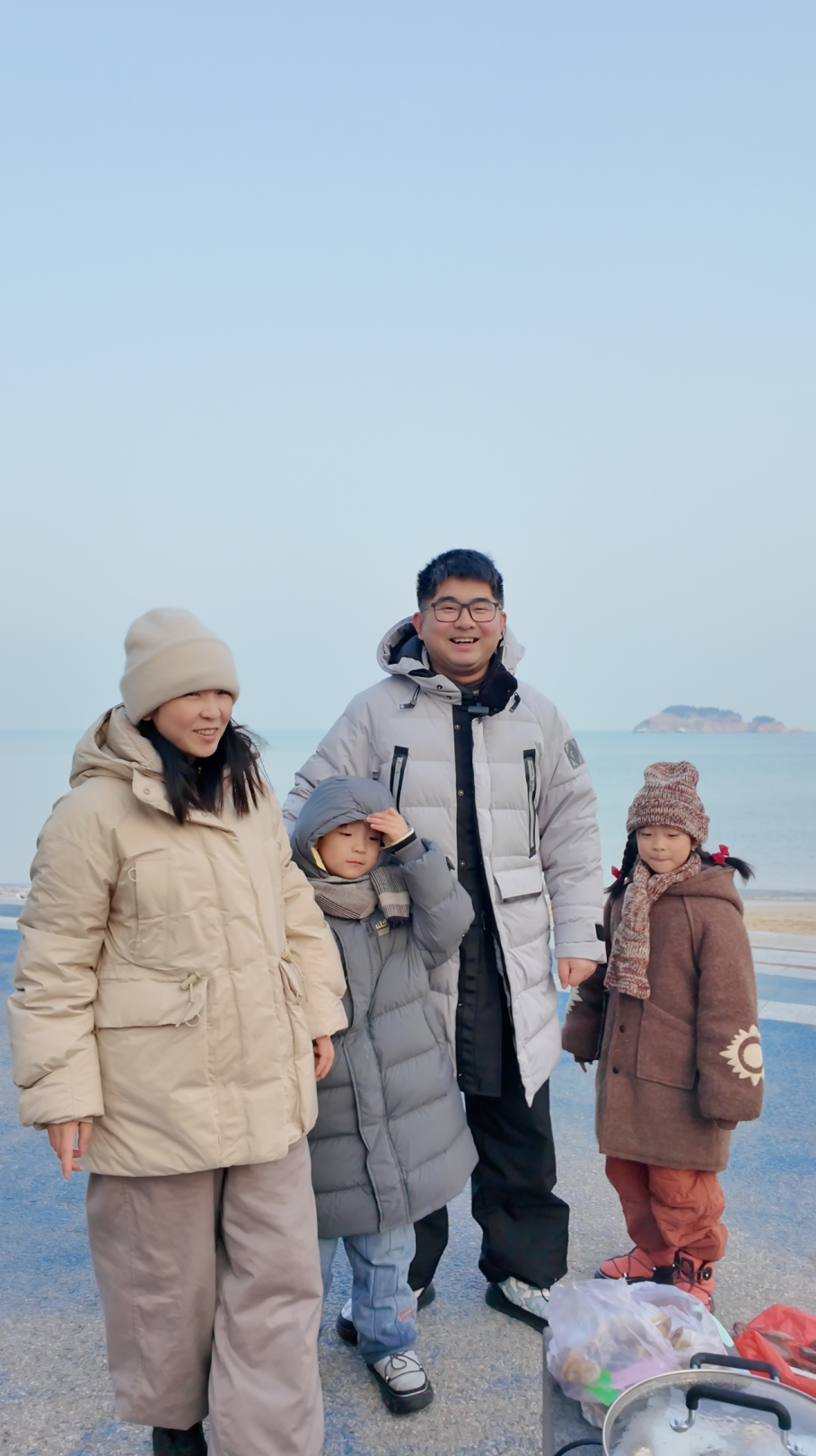 沈先生一家在半月湾海边