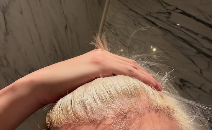 画面里,莫得丽都的舞台服,唯有掉落在腿上的金色断发,以及他头皮上那大块大块惊魂动魄的斑秃和红肿的水泡。一向以“段子手”形象示东谈主的他,在配文里淡薄地透露了脆弱又带点自嘲的一面:“很痒的头……其实第一天献技前,我头发王人染断了……满头斑秃和水泡,硬挺了一周没洗头,只是作念完造型你看不出来汉典,搞笑吧!”