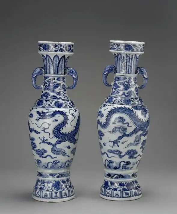 这对花瓶是现有最蹙迫的青花瓷样品之一,被誉为“元青花轨范器”。