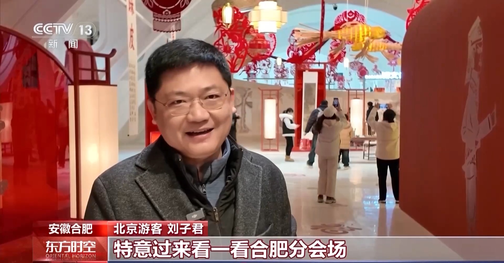 北京旅客 刘子君:专诚过来看一看合肥分会场。这边的老厂房很有年代感,还有一些鱼灯、剪纸,蛮有秉性的。
