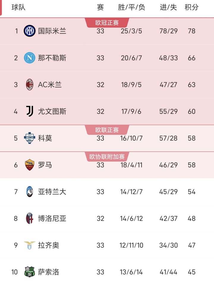 本场比赛事后,那不勒斯依旧逾期国米12分,联赛还剩5轮,国米冠军已基本莫得悬念。