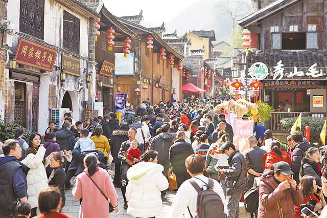 2月19日,秀山县洪安古镇老街淆乱不凡。通信员 胡程 摄/视觉重庆