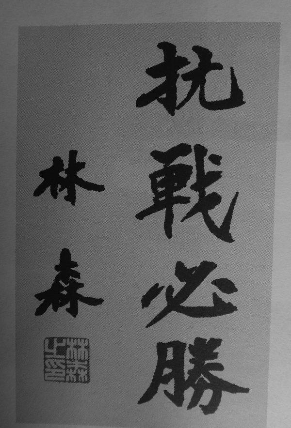 林森那时辰依然是七十多岁的东说念主了,从一九三二年当主席以来,一直保执低调魄力,不参与家数争斗。他在职上主要管一些典礼性的事务,但抗战爆发后,他屡次在公开场面讲要配合相背,保卫国度。武汉那里开临时寰宇代表大会的时辰,他亲笔写了抗战必胜几个字,作念成口号发到各地。一九四一年十二月九日,他代表国民政府认真向德国、意大利、日本讲和,在讲和书上签了字。那时辰珍珠港事变刚昔日,中国以国度元首方式这样作念,算是在外洋上明缔造场。