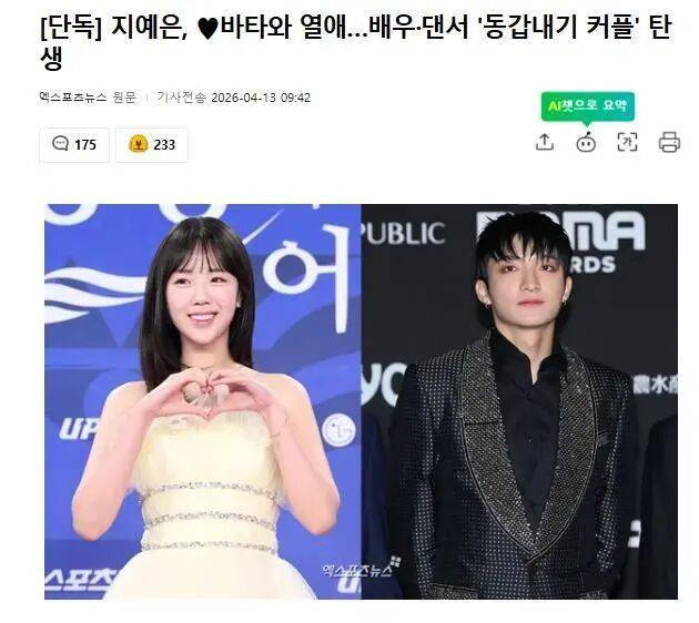 演艺圈又一双新CP建立,此次的主角是演员池艺恩和编舞家Vata。据韩国媒体4月13日报说念,这两位1994年降生的同龄东说念主,当今正在甘好意思往来中。