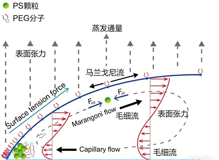 马兰戈尼流来自名义张力梯度。液滴挥发时,旯旮和中心的温度、浓度漫衍可能不同,而名义张力又会随这些因素变化,于是液体会沿着界面发生再行漫衍。