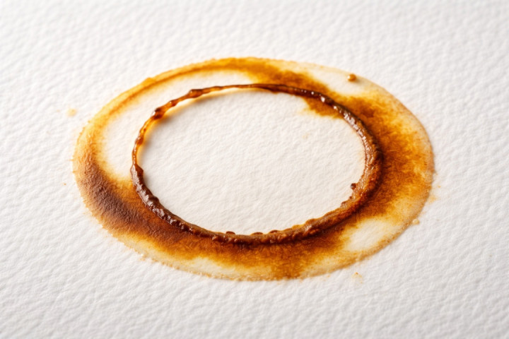 咖啡滴落到桌面后,液滴旯旮会形成一条环形战斗线,也即是液体、空气和固体名义相交的界限。
