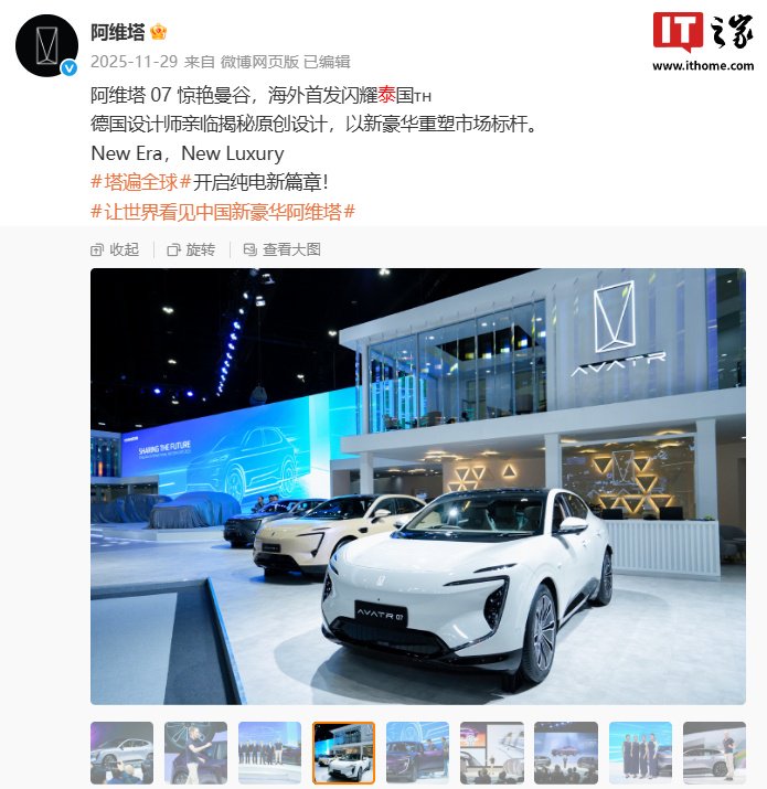 IT之家 1 月 28 日音书,阿维塔官方当天布告,首批右舵版阿维塔 07 大界限下线,即刻发运泰国。