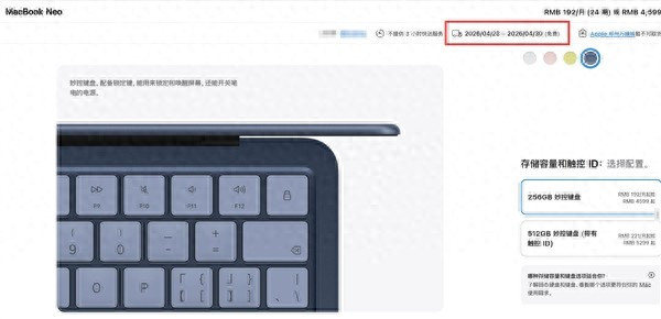 【TechWeb】苹果以“价钱屠户”姿态推出的MacBook Neo,正在资格一场冰火两重天的阛阓检修。这款起售价仅为4599元的风景级产物,凭借极致的性价比速即引爆阛阓,却也因销量远超预期而堕入严重的供应泥潭。现在,苹果官网表现该机型发货日历已推迟至4月30日,花消者需恭候至少两周,而这只是是供应危急的冰山一角。
