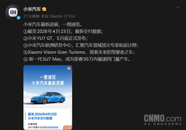 这份收获单由小米汽车官方于4月24日上昼在应对平台发布。数据涌现,放手4月23日,小米汽车在24个月内累计委派量已跳跃655000台。除新一代SU7外,另一款车型小米YU7在10个月内累计委派231000台。