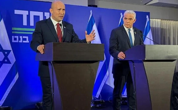 “咱们站在这里是为了咱们的孩子,以色列必须改动方针,”拉皮德与贝内特在聚拢发布会上说。